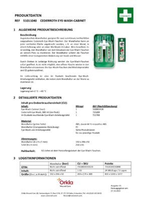 Das Cederroth Eye Wash Cabinet ist ein kompakter Augenduschen-Wandhalter, der vor Staub und Wasser schützt.