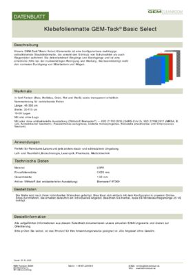 Unsere GEM-Tack Basic Select Klebematte ist eine mehrlagige selbstklebende Staubbindematte, die sowohl den Schmutz von Schuhsohlen als auch Wagenräder aufnimmt. Sie dekontaminiert Eingänge und Durchgänge und ist eine erhebliche Hilfe bei der routinemäßigen Reinigung und Wartung. Sie beeinträchtigt nicht den normalen Durchgang von Mitarbeitern und Wägen.