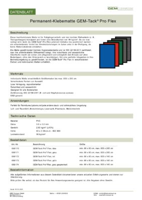 Typische Einsatzgebiete sind Übergangsbereiche in OP-Sälen und Sterilbereichen (Medizintechnik), sensible Schleusen zu Laboren (Forschung & Entwicklung) oder in der Nahrungsmittelproduktion, wo sie stets für maximale Sauberkeit und zertifizierte Sicherheit sorgt. Vertrauen Sie auf die GEM-Tack Pro Flex, wenn Sie eine hygienische, langlebige und flexible Lösung für Ihre kritischen Zonen suchen.