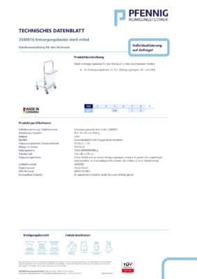 Steriler Entsorgungsbeutel mit 35 Liter Volumen für den Reinraum. Anbringungsmöglichkeit an der 35 Liter Entsorgungseinheit von den Reinigungswagen Clino CR1 und CR4.