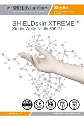 Extra langer steriler Reinraum-Handschuh SHIELDskin XTREME™ Sterile White Nitrile 600 DI+ mit 600 mm Länge.