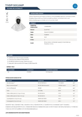 Tyvek IsoClean Kapuze mit Bändern, Modell IC 668 B WH 00