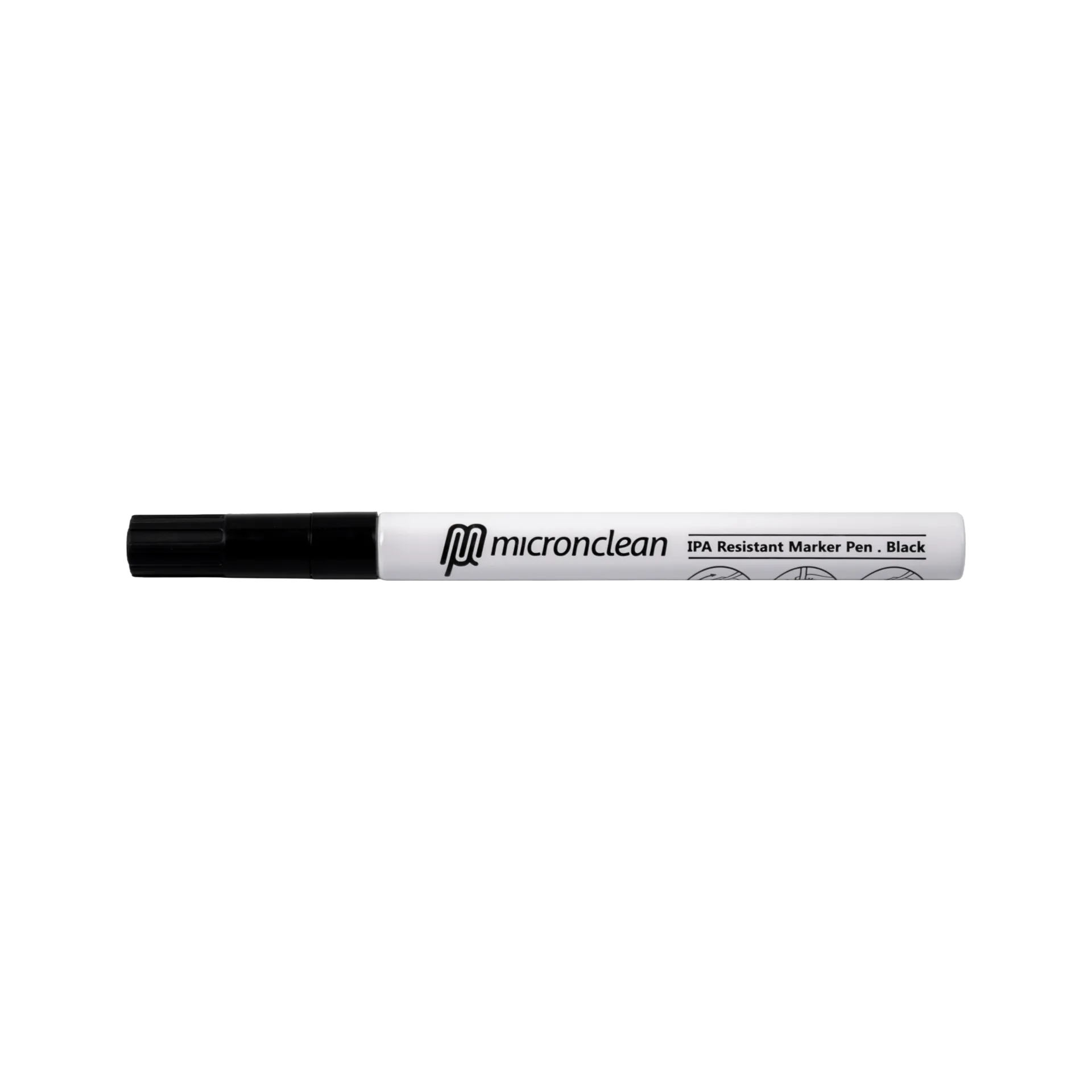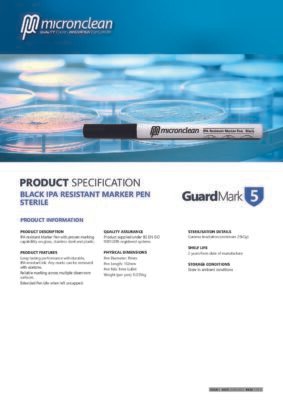 Isopropanol-beständiger Marker GuardMark 5 von Micronclean mit bewährter Markierfähigkeit auf Glas, Edelstahl und Kunststoff.