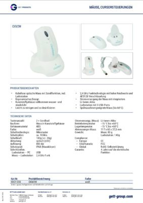 - Kabellose, optische Reinraum-Maus mit Ladestation und Scrollfunktion