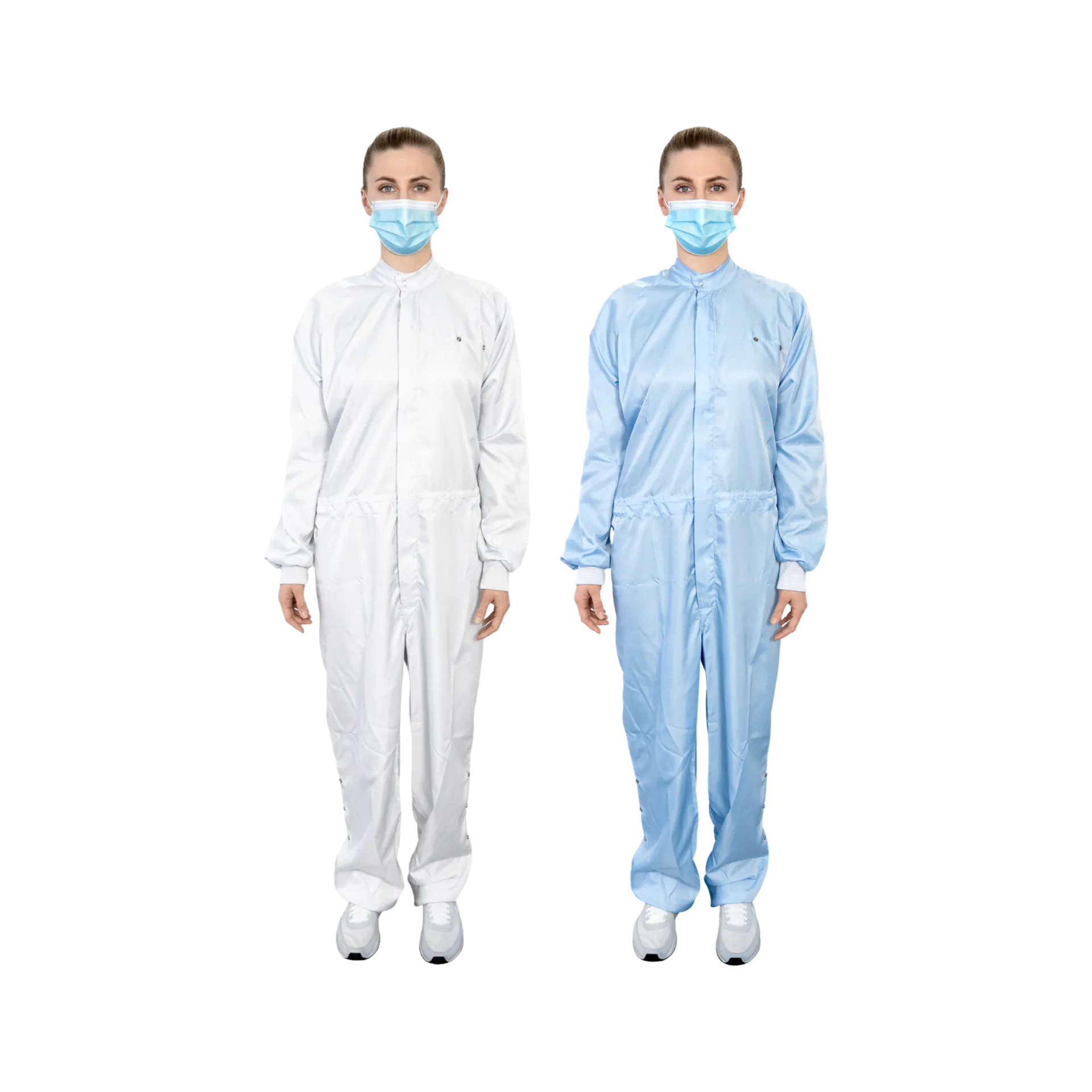 Reinraum-geeigneter Mehrweg-Overall in Weiß oder Hellblau – weitere Farben auf Anfrage.