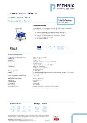 - Reinigungsmethode: Vorpräparationsmethode EasyMop CR