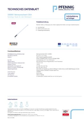 Das Reinraumschwert CR/A von Pfennig Reinigungstechnik ist ein spezialisiertes Reinigungswerkzeug, das für die effiziente Säuberung schwer zugänglicher Stellen und enger Zwischenräume in Reinräumen konzipiert wurde. Mit seiner flexiblen Finne und dem ergonomischen ClinoConnect Lock-Griff ermöglicht es eine präzise und gründliche Reinigung, selbst in Bereichen, die mit herkömmlichen Reinigungsgeräten schwer erreichbar sind