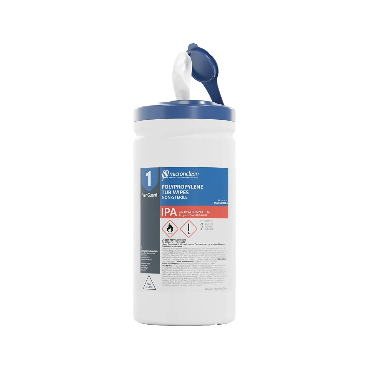 VeriGuard 1 ist ein vorgetränktes Polypropylen-Wischtuch, das für den Einsatz in Reinräumen niedrigerer Klassen als Wischtuch für harte Oberflächen entwickelt wurde.