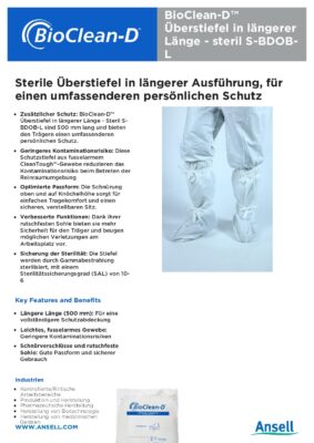 - Zusätzlicher Schutz: Mit einer Länge von 500 mm sind die BioClean-D Überstiefel S-BDOB-L länger als die Standardvariante und bieten den Trägern einen umfassenderen persönlichen Schutz.