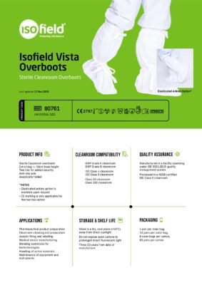 Die sterilen Isofield Vista Reinraum-Überziehstiefel wurden speziell für die hohen Anforderungen in GMP-Umgebungen der Klassen A und B entwickelt. Mit einer großzügigen Höhe von 50 cm bieten sie eine zuverlässige Barriere und schützen sensible Prozesse effektiv vor Partikeleintrag und Kontaminationen.