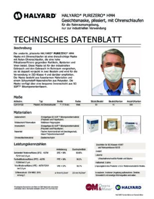 Die unsterile, plissierte HALYARD PUREZERO HM4 Reinraummaske mit Ohrenschlaufen ist eine dreischichtige Maske mit Nylon-Ohrenschlaufen, die eine hohe Filtrationseffizienz gegenüber Partikeln, Bakterien und Viren bietet. Diese Maske ist für den industriellen Gebrauch und den Gebrauch im Reinraum vorgesehen. Die Maske besteht aus fusselarmen Materialien und einem Schaumstoff-Nasenstreifen aus Polyester. Sie verfügt über eine bequeme Innenschicht aus SO SOFT Bikomponentenfasern.