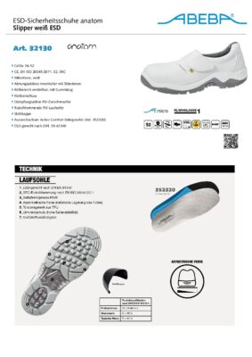 Weiße ESD-Slipper Abeba 32130 aus der anatom-Serie.