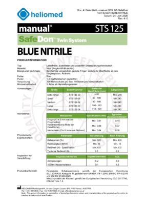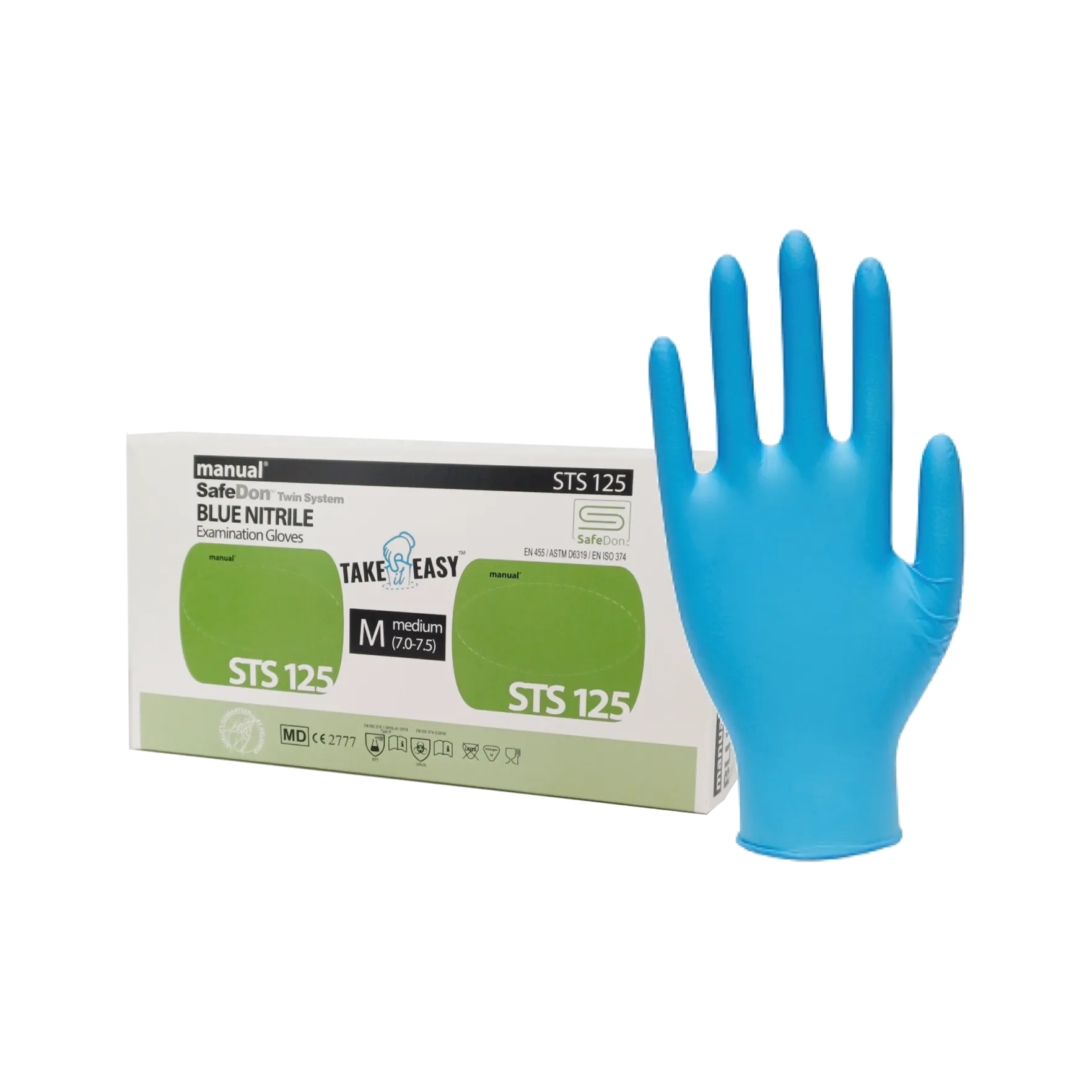Der Untersuchungshandschuh manual STS 125 bietet ein Höchstmaß an Sicherheit und Effizienz für den medizinischen Alltag. Dank des innovativen SafeDon Twin Systems „Take it Easy“ lassen sich die Handschuhe stets einzeln und hygienisch mit der Stulpe zuerst entnehmen, was Materialverschwendung effektiv verhindert und das Kontaminationsrisiko für die verbleibenden Handschuhe minimiert.
